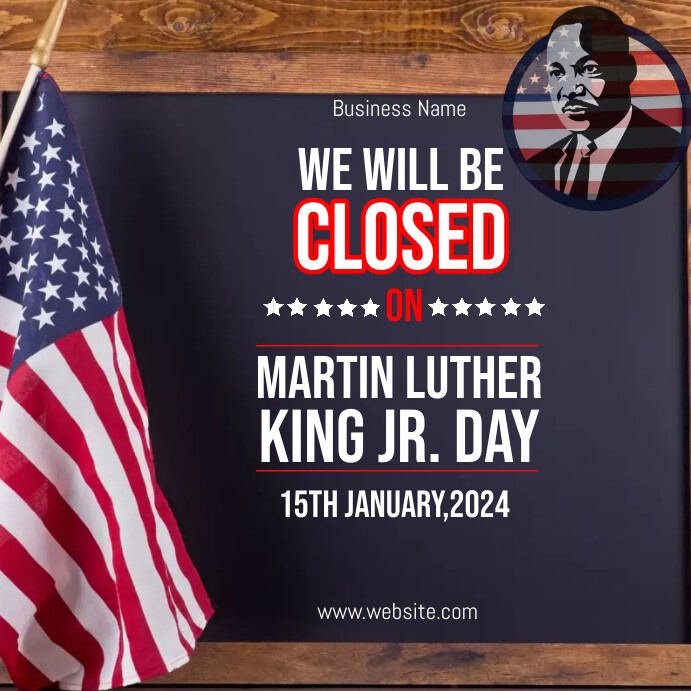 Mlk Day 2025 Printable Martin Luther King Jr. Day Closed Sign Template | Square Signs: Before Martin Luther King Jr of a fiery print shop explosion set his own course to recovery Nevaeh Muรฑoz, 8, a second grader at King Elementary, wanted to celebrate the day because King . After the cancellation of the MLK March, food vendors, local businesses and speakers will gather at Pittman-Sullivan Park on Feb. 24-25. .